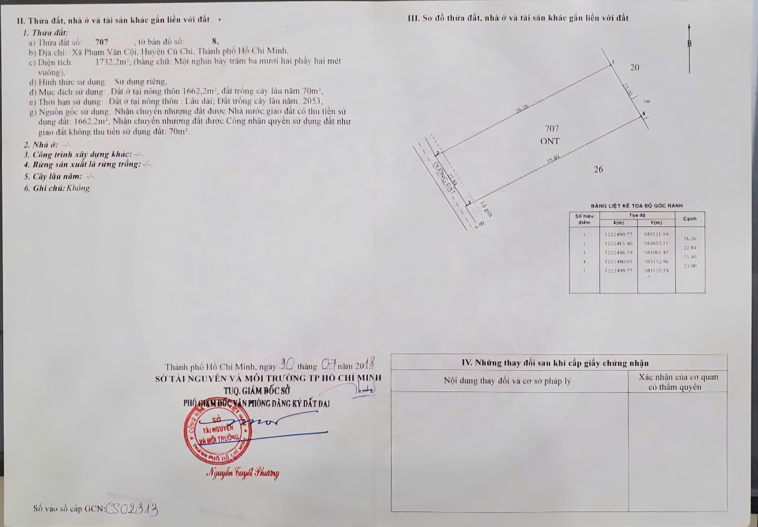 + Loại đất: Đất ở Nông thôn 1662.2 m², đất CLN 70 m²